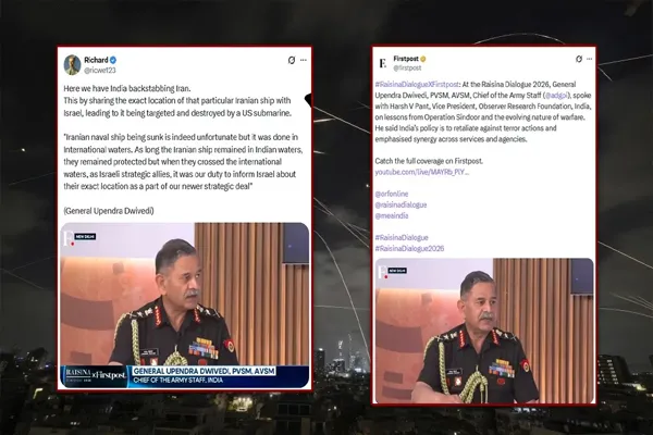 मध्य पूर्व में ईरान, अमेरिका और इजरायल के बीच चल रहे भारी तनाव और युद्ध के हालात से पूरी दुनिया में खौफ का माहौल है। जहां एक तरफ सभी देश इस जंग के जल्द खत्म होने की उम्मीद कर रहे हैं, वहीं दूसरी तरफ पाकिस्तान अपनी नापाक हरकतों से बाज नहीं आ रहा है। इस युद्ध की आड़ में पाकिस्तान ने भारत की अंतरराष्ट्रीय छवि को खराब करने के लिए एक गहरी साजिश रची है। सोशल मीडिया पर भारतीय सेना प्रमुख के नाम से एक एआई-जनरेटेड (AI-generated) डीपफेक वीडियो वायरल कर यह झूठा भ्रम फैलाने की कोशिश की जा रही है कि भारत ने ईरानी नौसेना के युद्धपोत ‘IRIS Dena’ की खुफिया लोकेशन इजरायल के साथ साझा की थी।